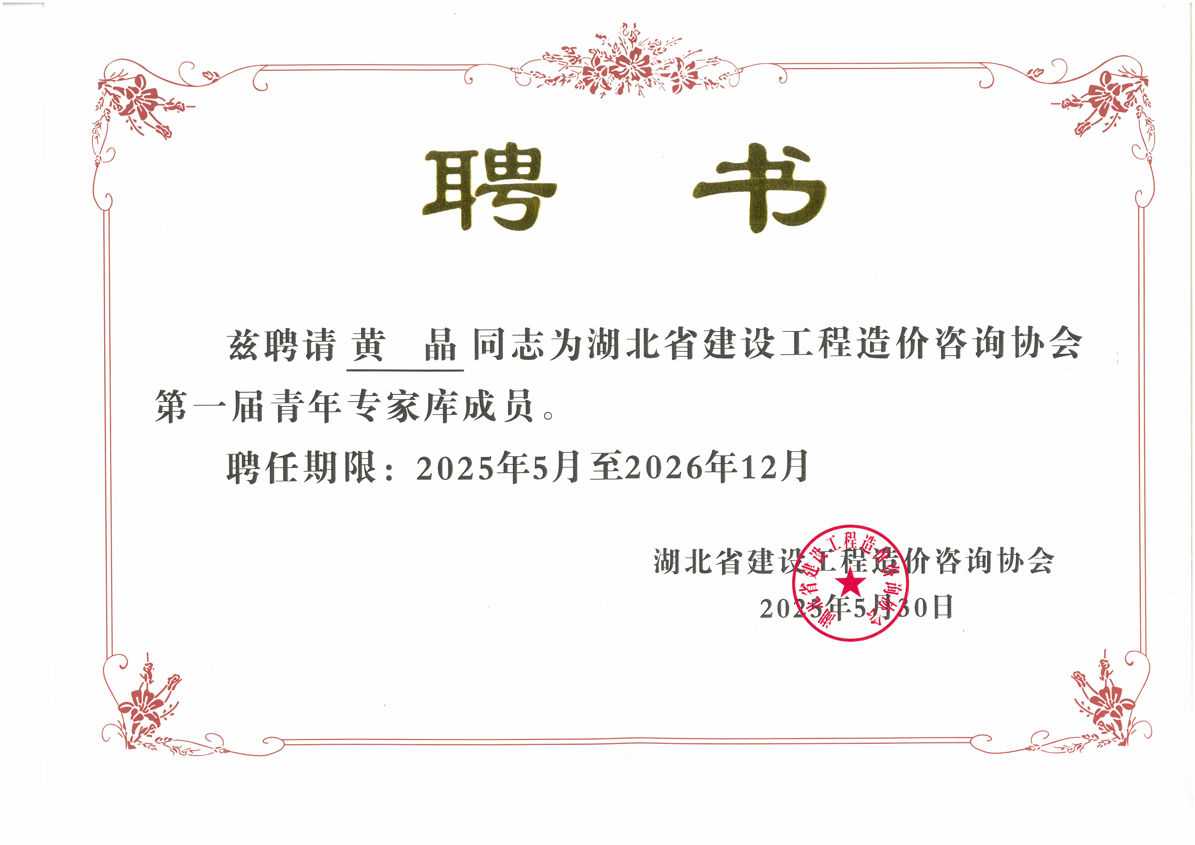 此次入選湖北省建設工程造價咨詢協(xié)會第一屆青年專家?guī)?,不僅是對黃晶個人專業(yè)能力的高度認可,更是對我司在工程造價領域專業(yè)水平的肯定。這既是一份榮譽,更是一份責任。